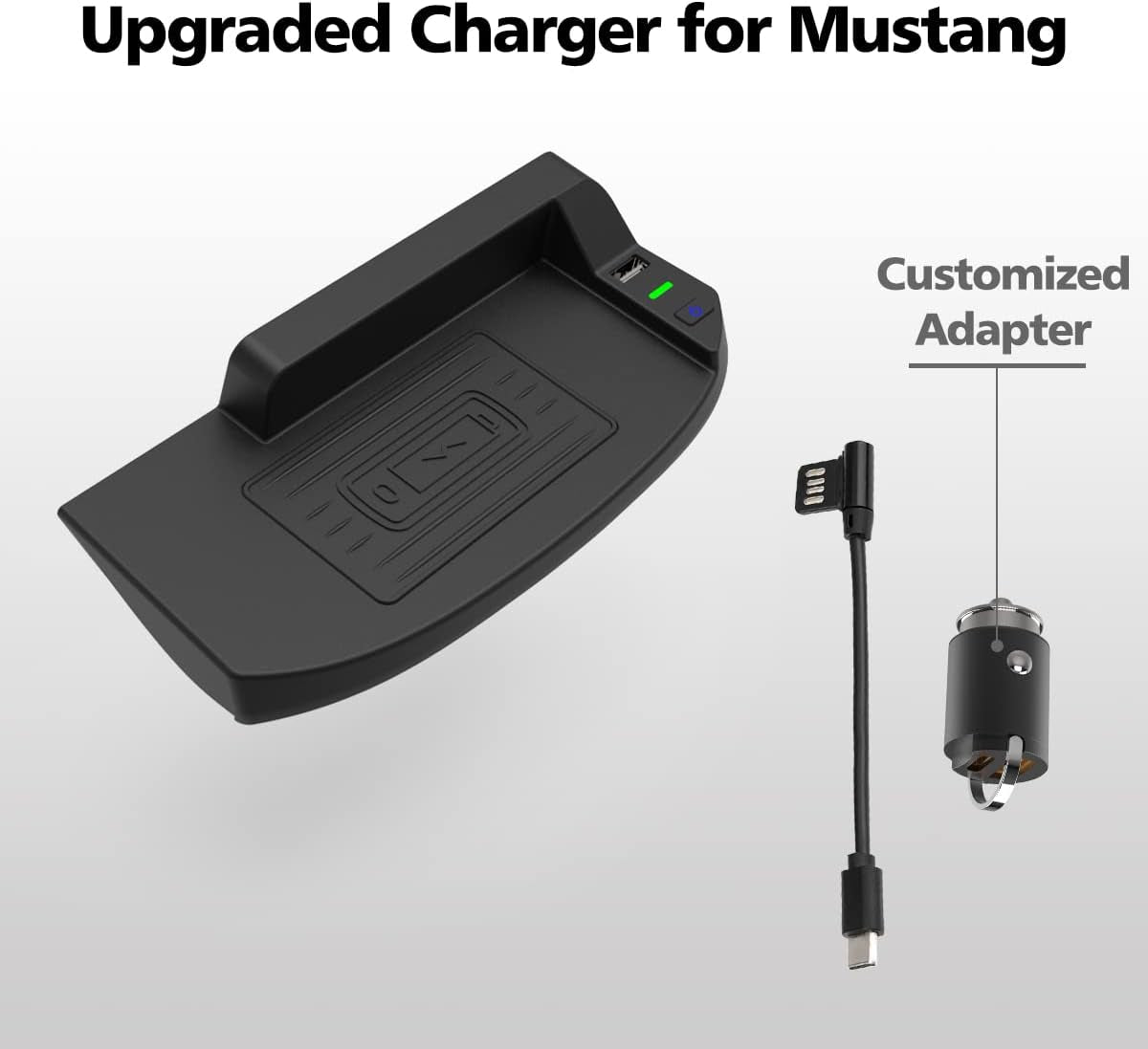 This car wireless charger is specially designed for the S550 Ford Mustang 2015-2023 and is a must have Mustang interior accessory as Ford didn't provide a wireless charging point from factory.